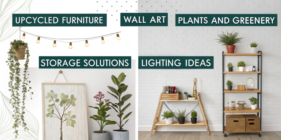Peel-and-stick wall art, floating shelves, upcycled furniture, and lighting projects.